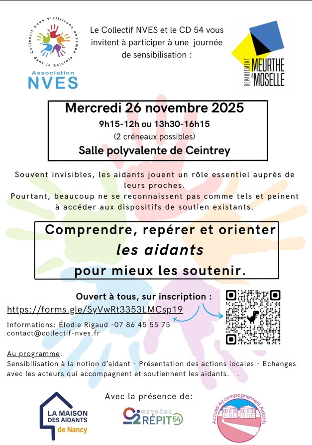 Le Collectif NVES (Nous Vieillirons Ensemble dans le Saintois) a pris part à cette journée de mobilisation aux côtés d’acteurs engagés pour la reconnaissance et le soutien des proches aidants :