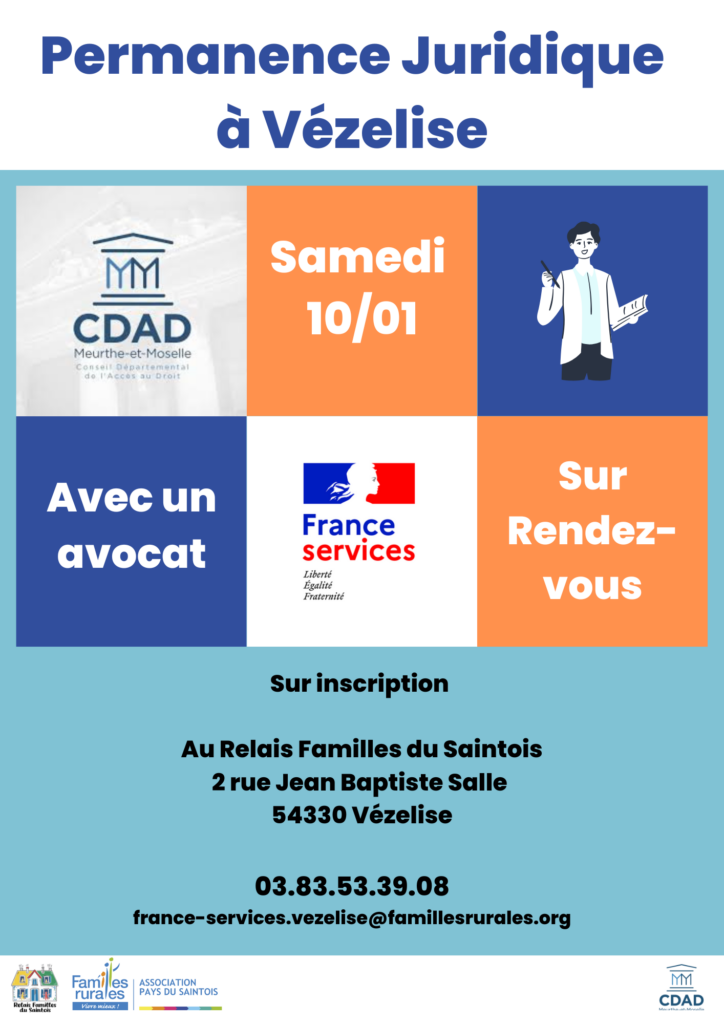 Prochaine permanence juridique dans les locaux du Relais Familles du Saintois : le 10 janvier 2026.